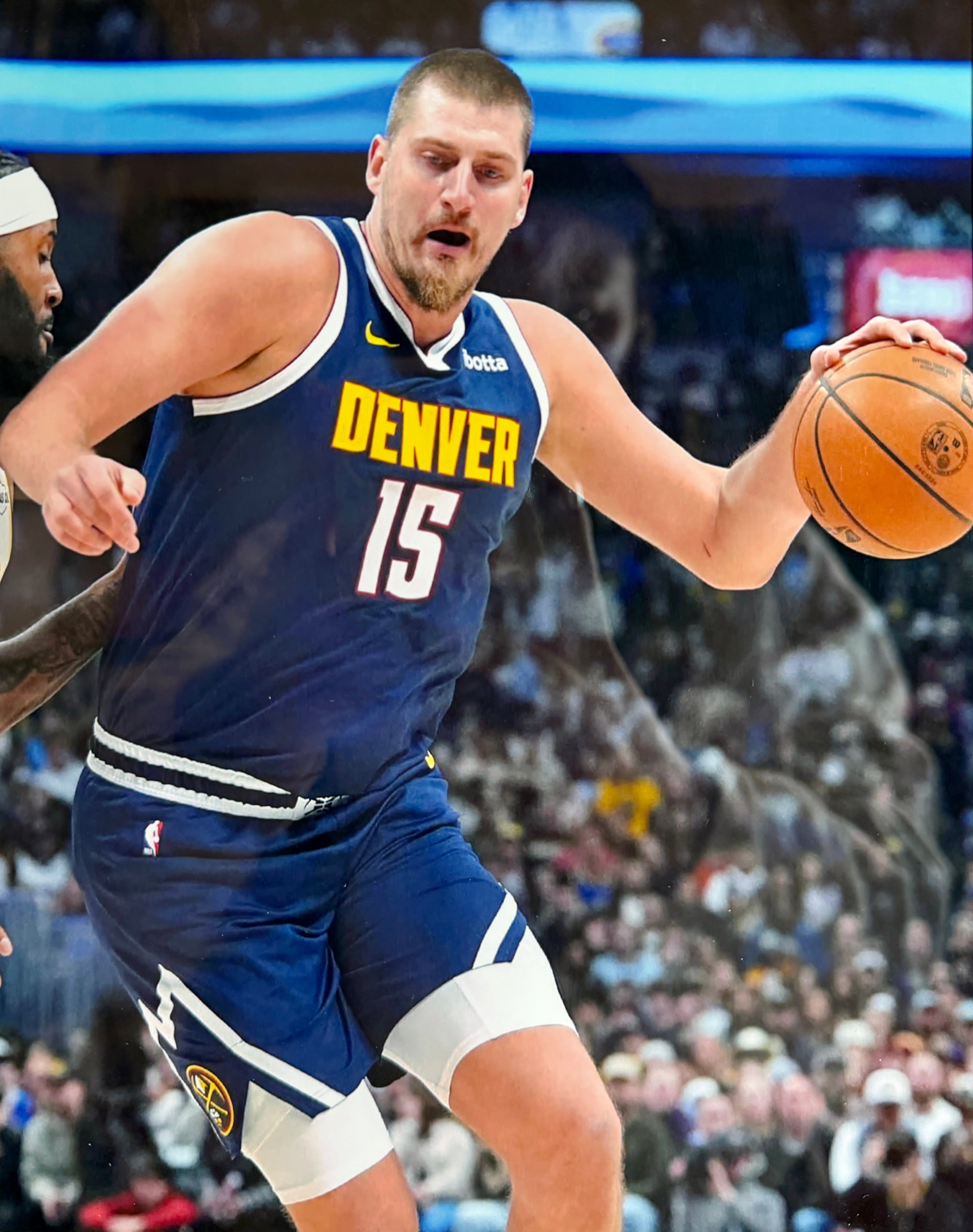 - Authentic Nikola Jokic autograph with "NBA MVP" inscription on official navy Nuggets jersey