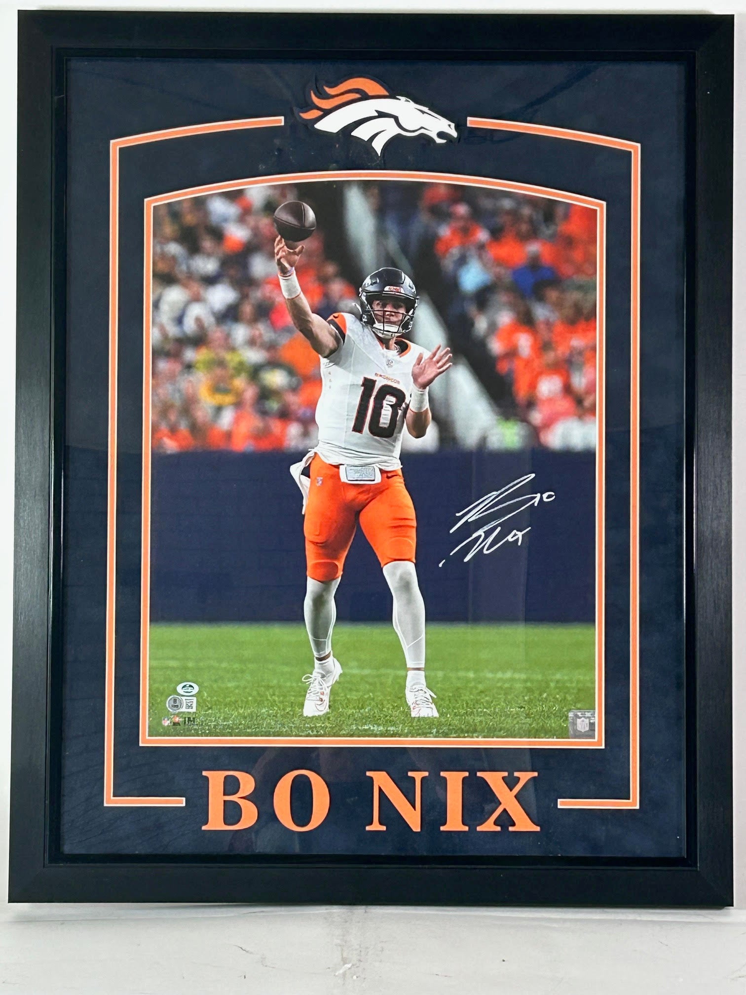 Bo Nix Autographed Denver Broncos 16x20 Photo - Framed 25x31 - Beckett COA