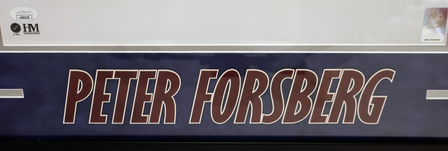 This framed piece is not just a tribute to Peter Forsberg's illustrious career but also a valuable investment for any sports memorabilia collector. Whether you're a long-time fan or a dedicated memorabilia enthusiast, this autographed and inscribed action shot is a timeless addition to your collection.