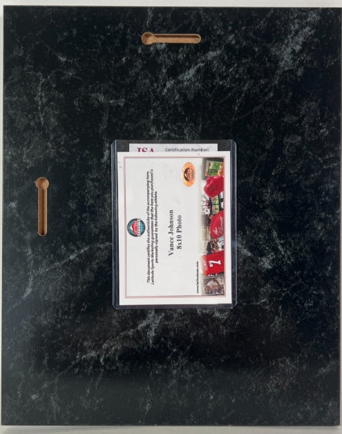 - Hand-signed by Vance Johnson with "God Bless" inscription